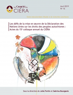 Fortin, Julie et Sabrina Bourgeois (dir.), « Les défis de la mise en oeuvre de la Déclaration des Nations Unies sur les droits des peuples autochtones : Actes du 15e colloque du CIÉRA », Cahiers du CIERA, no 16 (2019-04-30), 91 p.